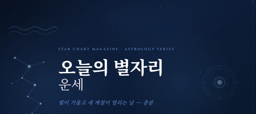 오늘의 별자리운세3월 20일 별자리 운세 | 오늘의 하늘 2026년 3월 20일 금요일 오늘, 별은 무슨 말을 하는가12별자리 운세 태양 양자리 진입 […]